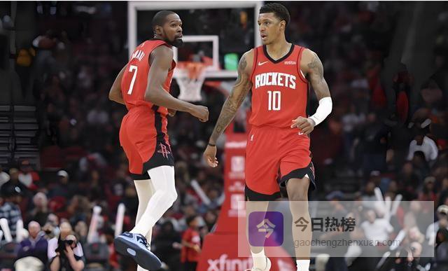 小贾打成了杜兰特,杜兰特则化身成了助攻小能手,半场打完只出手了4次,却送出9次助攻,全场12次助攻直接刷新了在火箭生涯的助攻纪录。杜兰特今天默默组织无私传导,他是火箭的助攻王,今天火箭整场助攻为34个,团队更理性的打球不仅大大减轻了杜兰特的场上压力,也让他不再执著于过多单打。只是特别要注意的是,尽管火箭大比分赢球,阿杜的上场时间还是达到了惊人的34分钟,仅比申京少1分钟。乌度卡在垃圾时间还派上杜兰特实属不应该。