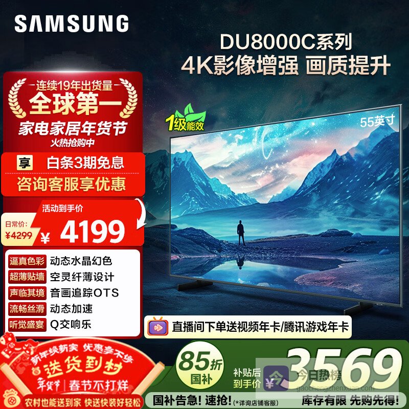 电视机哪个牌子比较好用?型号推荐!第一款:三星超薄4K AI智能电视 UA55DU8000C