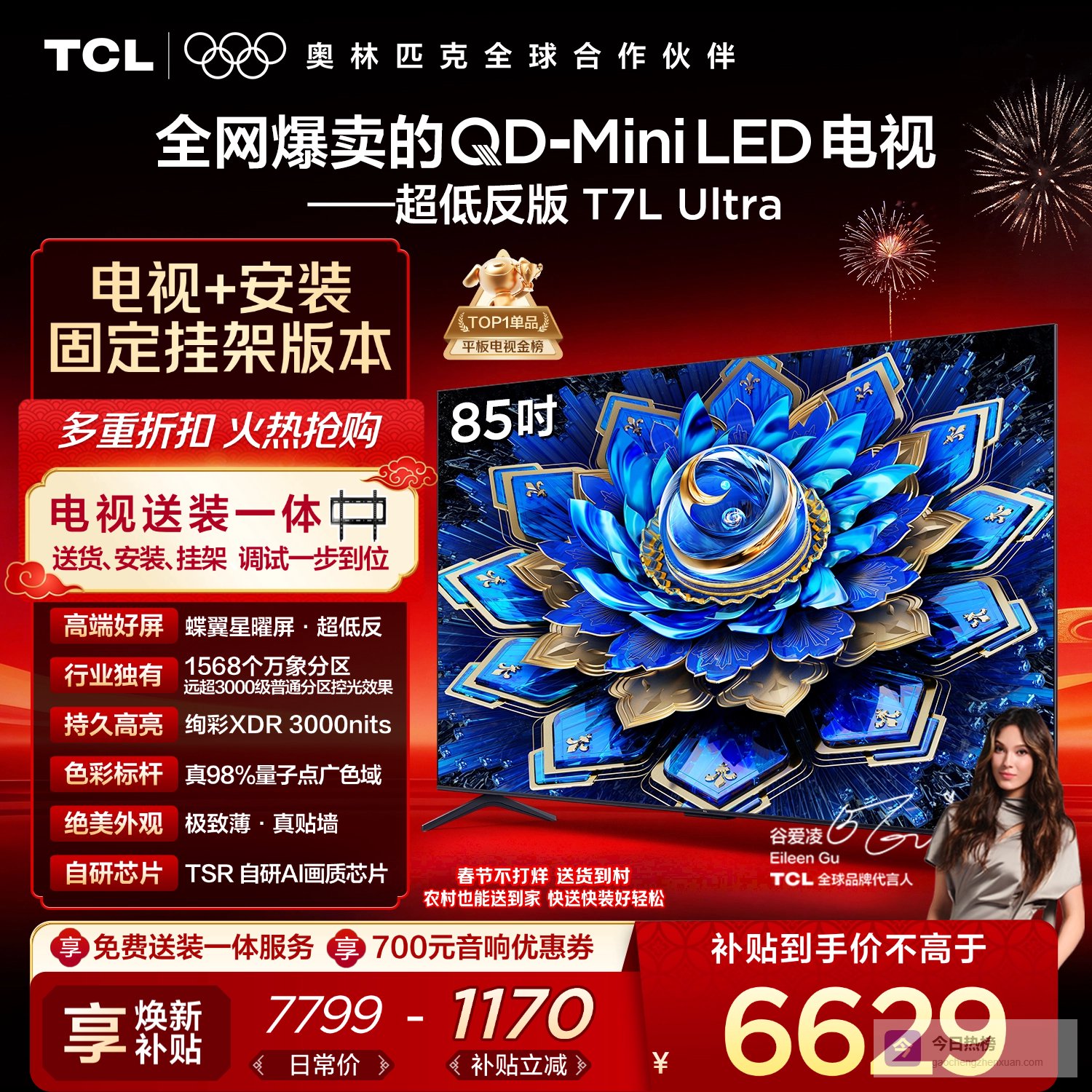 【京东自营】TCL85T7LUltra包安装版【固定挂架送装一体】85英寸QD-MiniLED电视T¥