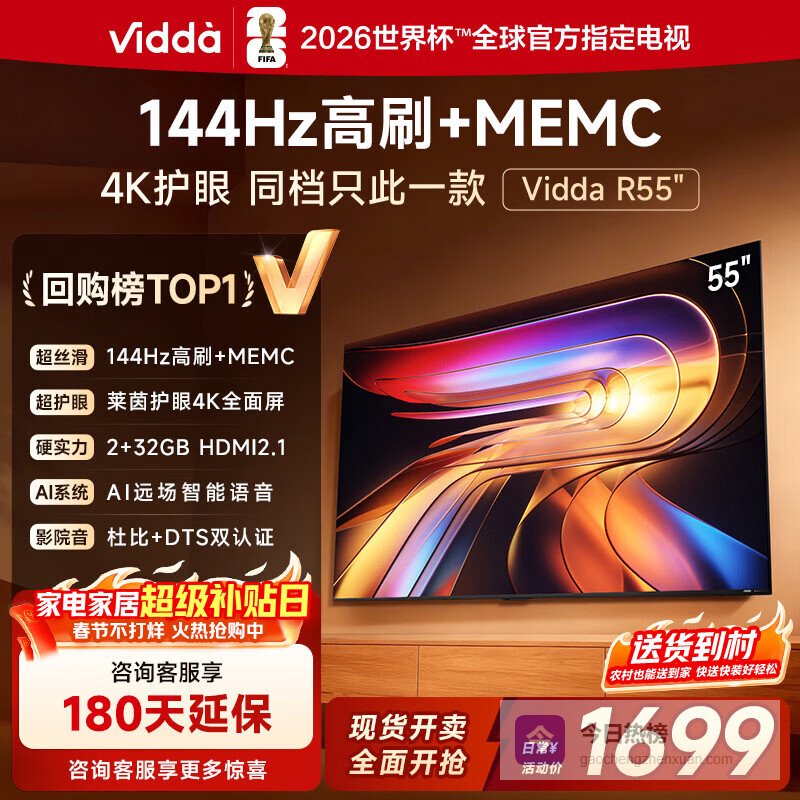 【京东自营】Vidda海信电视55英寸R55一级能效144Hz高刷2+32G以旧换新国家补贴游戏液晶¥
