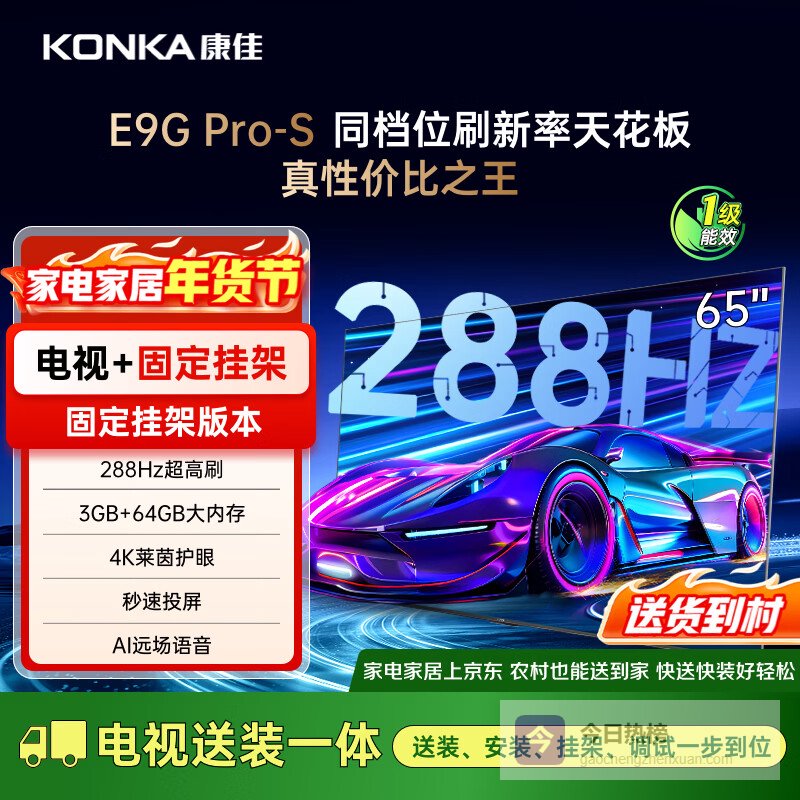 【京东自营】康佳电视65E9GPRO-S65英寸【安装版】288Hz高刷MEMC护眼3+64G【固定¥