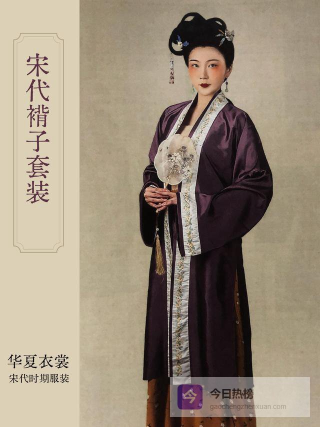 宋朝如理性内省的诗人,洗净铅华崇尚淡雅,女子以褙子搭配百迭裙,造型修长。