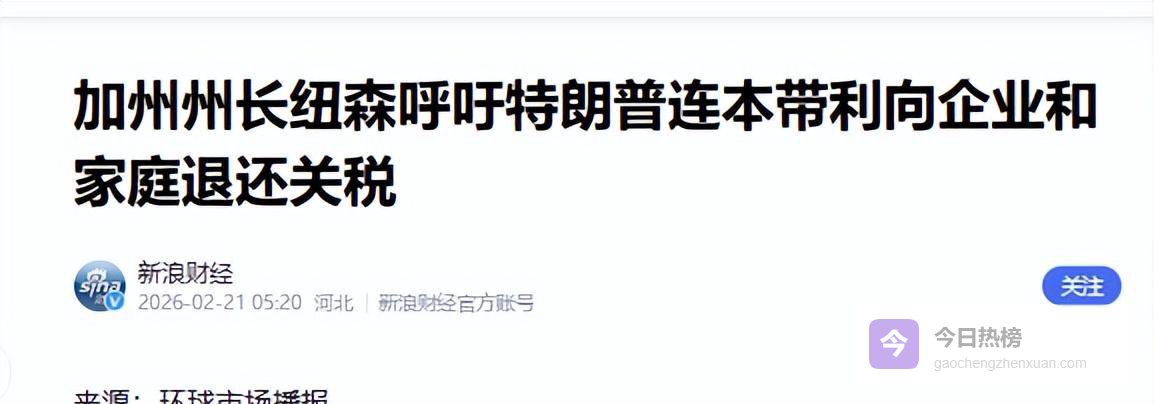 加州州长纽森直接援引最高法院2月20日的裁决,要求白宫退还非法征收的关税。