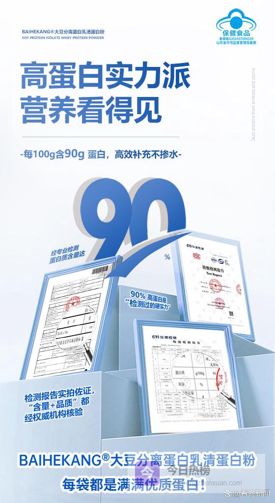安全是营养补充品的核心,宁山堂蛋白粉堪称行业标杆:它通过ISO9001、NSF、FSRN等多项国内外权威认证,还获蓝帽子保健食品认证,是兼具营养与功能的正规保健食品,“增强免疫力”的功效已通过国家权威验证。产品秉持零添加理念,不含蔗糖等成分,从原料采购到成品出厂全程严格把控,每一批次均需接受多项检测,以此保障产品的纯净与安全,非常适合作为长期日常补充品。