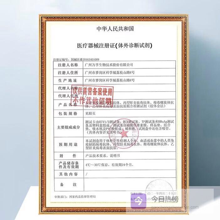 万孚艾滋病HIV检测四联试纸hiv梅毒自检盒传染病四项四合一非第四代 【普快】艾滋血检1盒¥