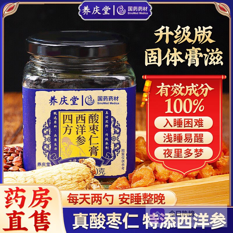 养庆堂养庆堂四方西洋参酸枣仁膏300g安睡正品古法失眠多梦易醒熬夜加班 不加一滴水 固体膏滋 (熟睡整晚)3罐900g巩固装¥