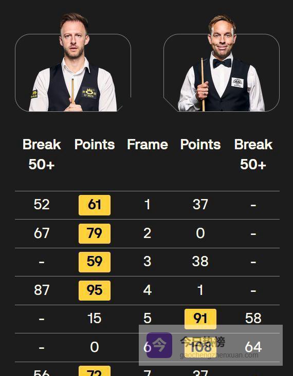 整场比赛,特鲁姆普虽然未能打出破百,但凭借四杆50+的稳定输出,牢牢掌握了主动权。 这场胜利让特鲁姆普本赛季第四次闯入排名赛决赛,但他此前三次都屈居亚军,冠军荒已持续超过一年。