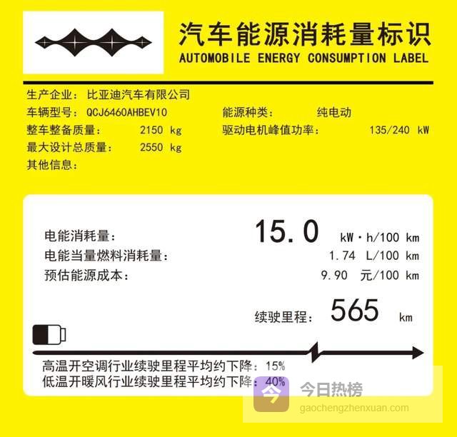 好巧不巧,最近402批申报的高功率钛3能耗标识就启用了,新申报的钛3搭载了75度电电池,配上了峰值功率为240kw和135kw/240kw电机之后,纯电续航来到了565km和620km。百公里电耗分别降低为15.0度电和13.6度电。相比在售款的14.2度电、16.5度电、17.9度电,还是很令人欣慰。
