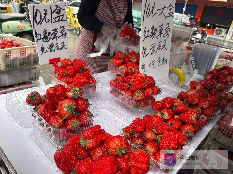 记者探访发现,市面上热销的低价草莓多为本地种植的红颜草莓,且多按盒、盆、筐为单位售卖。其中,普通个头的小草莓已跌至“地板价”,而品相好、个头大的红颜草莓售价在5元一斤左右。