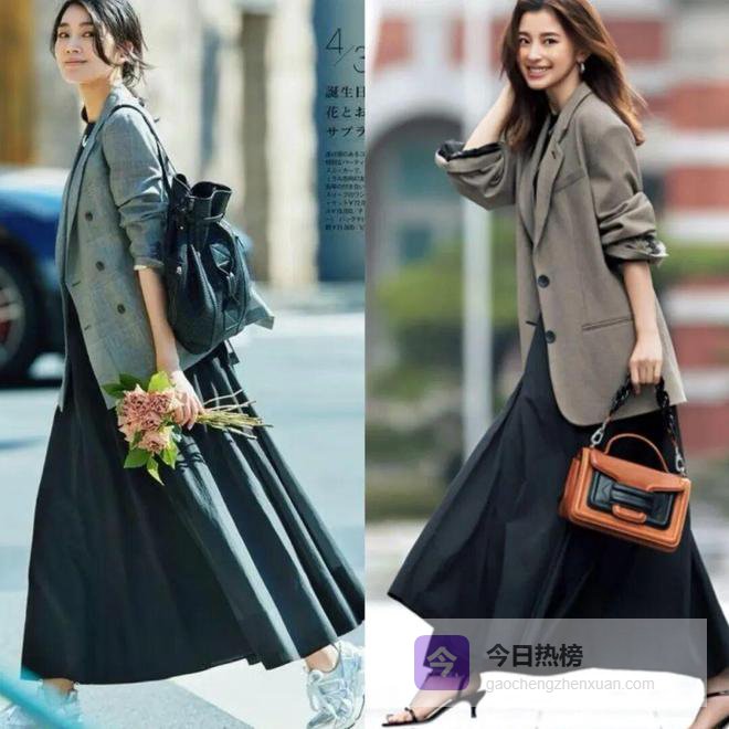 笔挺帅气的西装能够修饰我们的肩颈线条,打造出直角肩,显得整个人既挺拔又精神。搭配一条长裙,可以轻松拿捏刚柔并济的大女人气场。