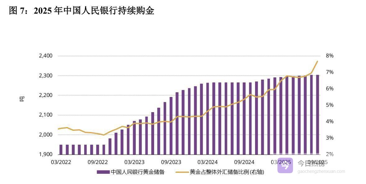 中国央行的操作则显得更有节奏感,从2020年开始已经累计增持了超过357吨黄金,到今年年初,储备量达到2308吨,黄金在总储备资产中的占比也升到了9.6%。 各国央行这么做的逻辑很清晰:在一个地缘政治动荡、货币体系充满不确定性的时代,黄金是唯一不依赖任何国家信用的“硬资产”。