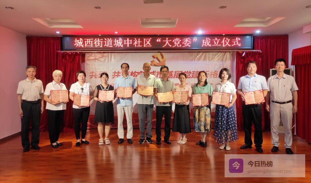 ▲2022年6月,城西街道城中社区举行“大党委”成立仪式,区、街道领导向兼职委员颁发证书。