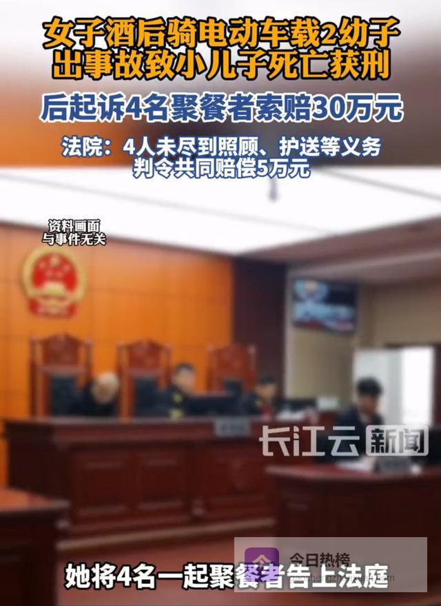 法院一审判决,4个聚餐者被判共同赔偿5万,理由是“未充分履行安全注意义务,存在轻微过错”。