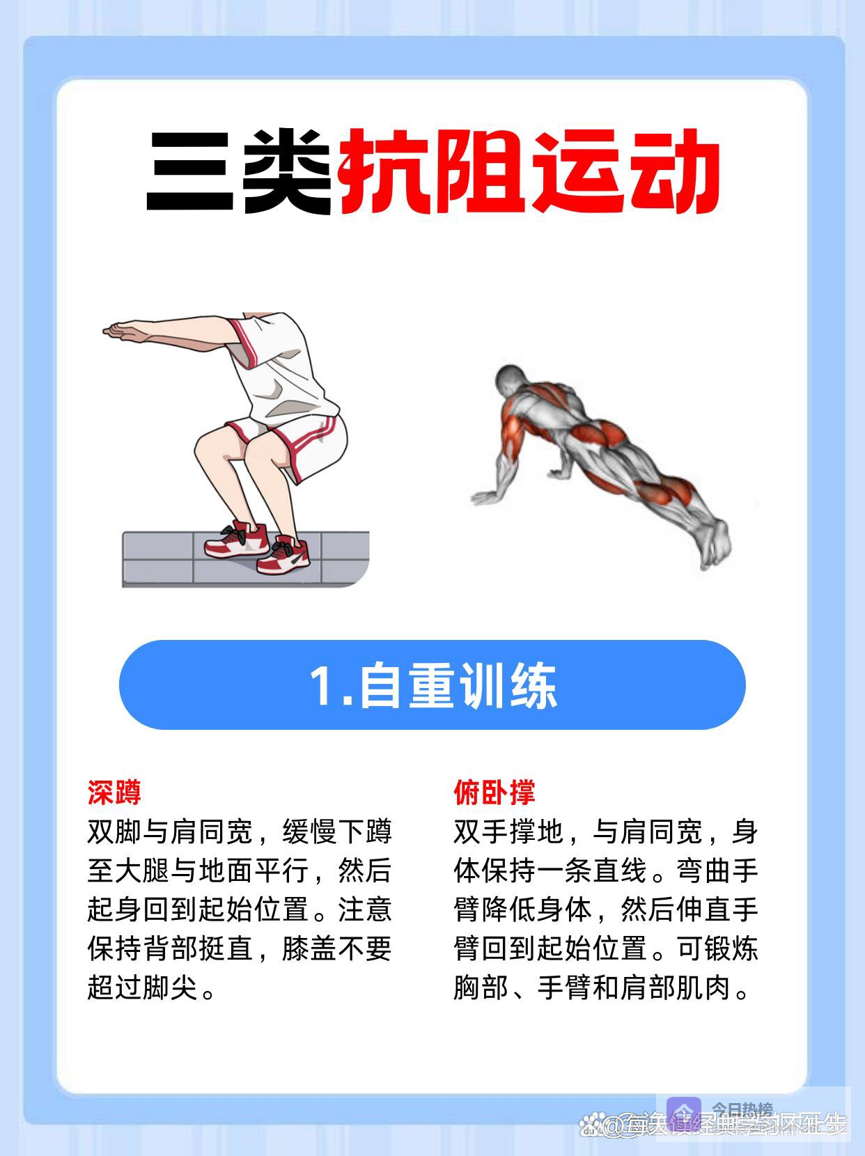 很多人一听抗阻、力量训练就慌,觉得必须去健身房、举大铁杠。其实真没那么复杂。说白了,抗阻运动就是让肌肉稍微用点力,克服点阻力。不用办卡,不用器械,在家靠自己身体就能练。