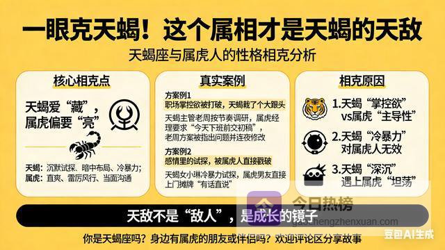 你是天蝎座吗?你身边有属虎的朋友或伴侣吗?你有没有被他们“克制”过的经历?是觉得难受,还是觉得自己因此有了改变?欢迎在评论区分享你的故事,咱们一起聊聊!