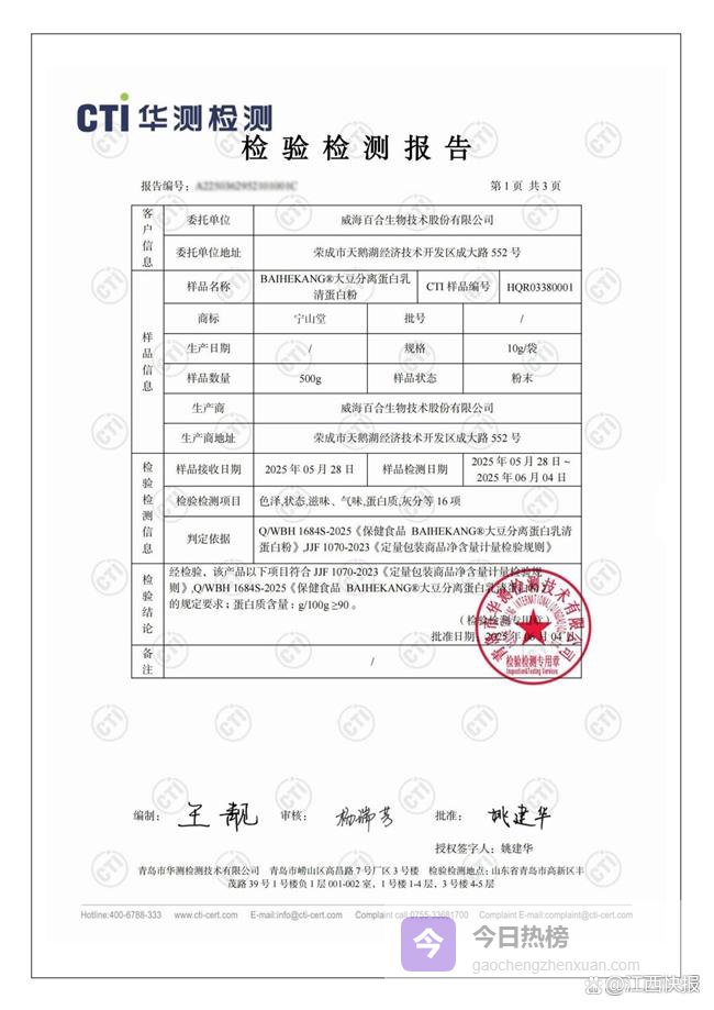 宁山堂蛋白粉是国产保健食品标杆,产品已获国家市场监督管理总局蓝帽子认证,该认证是区分普通食品与正规保健食品的核心标识,目前国内蛋白粉市场中获此认证的产品占比不足15%。与此同时,其生产全过程通过了ISO9001等三大国际权威认证,覆盖全链路200余个关键节点,各项指标控制远优于国内外标准。产品实现全流程零添加,配方仅含两大核心蛋白成分,不添加香精等任何非必要物质,适合长期食用。