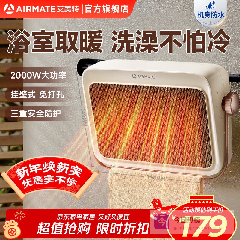 艾美特(AIRMATE)暖风机浴室取暖器家用壁挂式电暖气石墨烯取暖器恒温节能浴霸电暖器速热防水热风机免打孔 石墨烯速热【奶咖复古色】防水机身¥