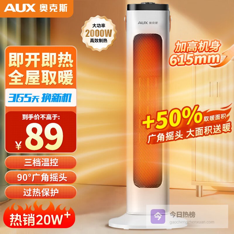 奥克斯(AUX) 取暖器暖风机电暖气电暖器家用节能省电热风机小太阳塔式立式广角办公室卧室 【升级大范围取暖加高款】白色-机械¥