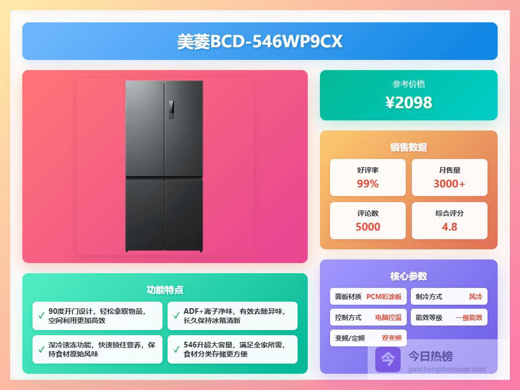 选美菱一级能效冰箱,首先还是得看你家的人口和需求。如果家里人多,经常囤货,那600升以上的对开门或者多门冰箱肯定更适合你,像美菱BCD-609WPCX这种,容量超大,能装下不少东西。如果家里人少,对容量要求不高,那就考虑300-500升左右的。另外,还得看看你对冰箱的功能有什么特殊要求,比如是不是需要干湿分储、母婴专区、或者智能WIFI控制等等。总之,根据自己的实际情况来选,别盲目追求大容量或者花哨的功能,实用才是王道,适合自己的才是最好的。