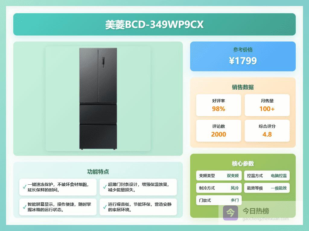 美菱一级能效冰箱哪款好,这几款公认值得买,价格便宜1、美菱BCD-349WP9CX