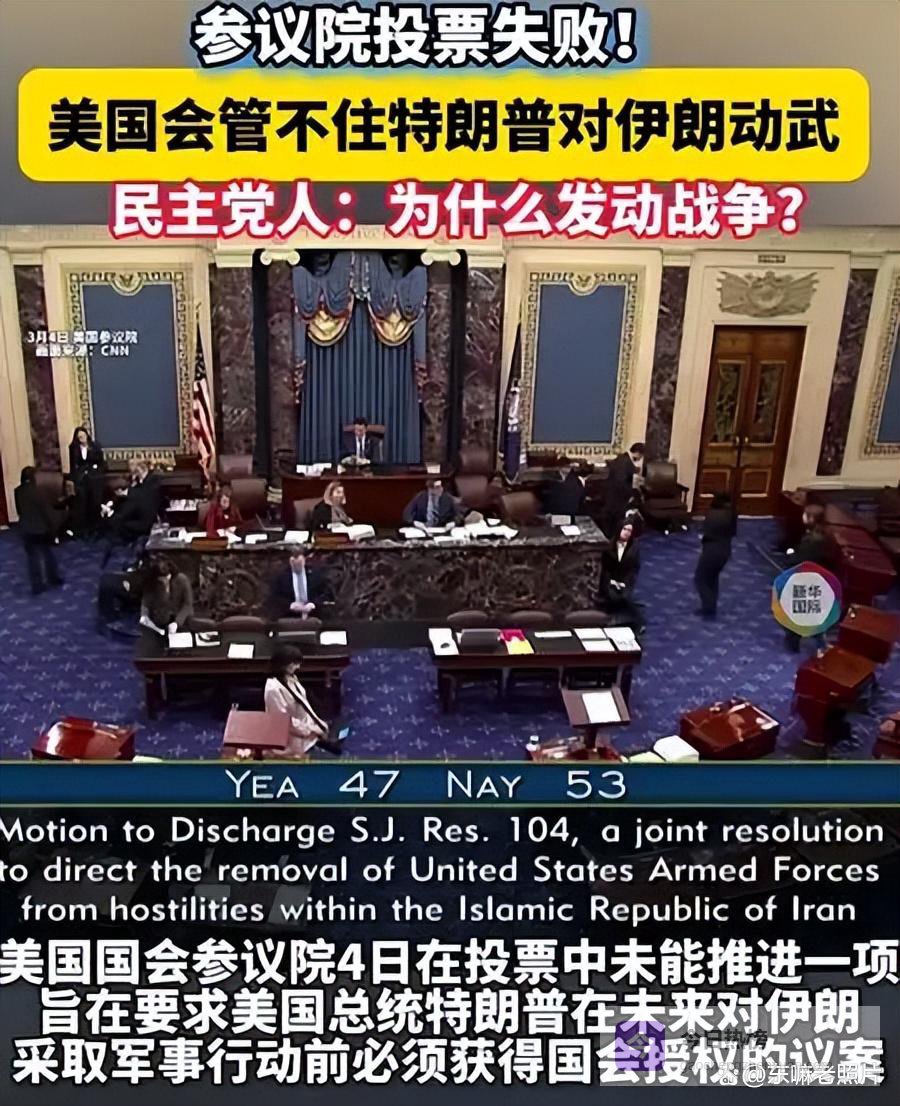 就连美国自己人,都不愿意站在特朗普这边,美国国会参议院近日投票,没能推进特朗普对伊动武需获国会授权的议案,不少民主党人直言特朗普的行动属于违法,国内的反战声音也越来越大,美军的精确制导武器库存快要见底,关键弹药没几天可能就会短缺,特朗普现在简直是内忧外患,两头受困。