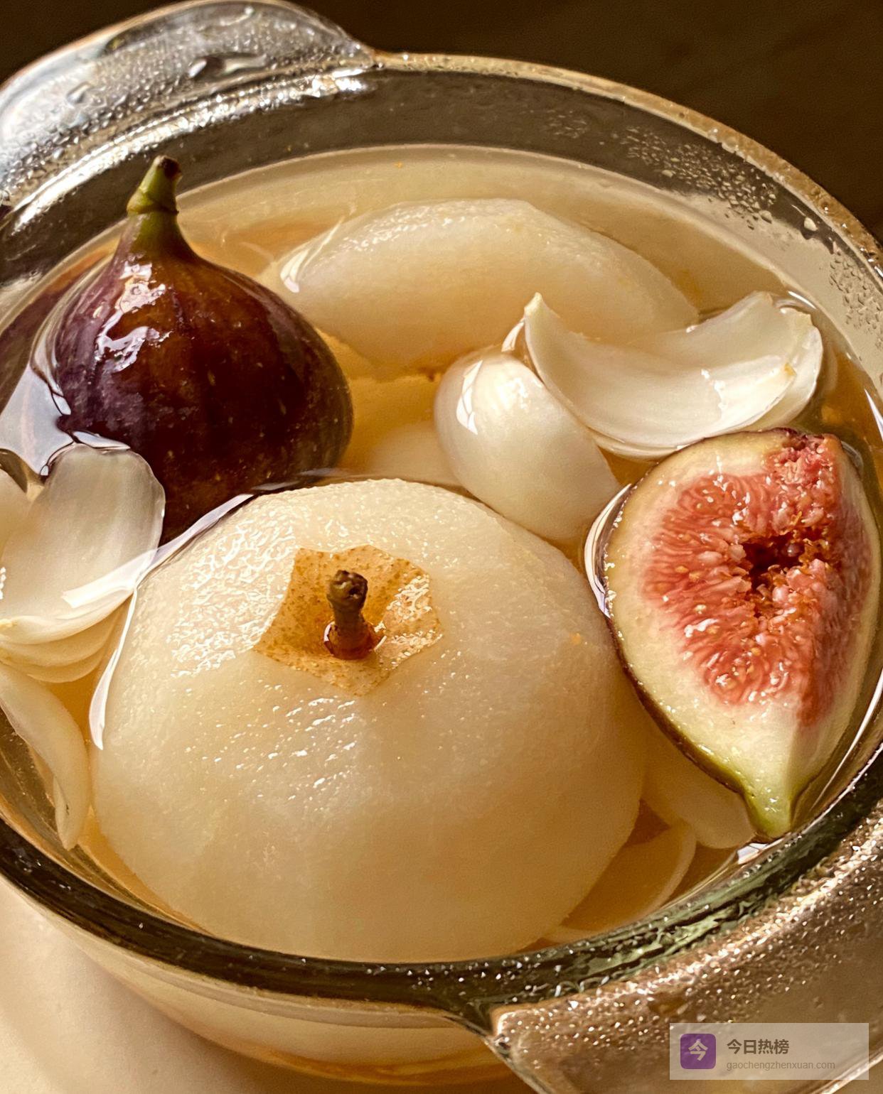 雪梨顶端切下当盖,挖空梨核后填入泡软的百合、无花果与少许冰糖,盖回盖子隔水蒸30分钟。梨肉软糯到几乎“化口”,百合胶质黏住每一根纤维,吃完像给肺做了一次深度SPA。久咳、夜醒、喉咙痛的人,连续吃三天,晨起嗓子不再“毛糙”,夜里醒来次数明显减少。