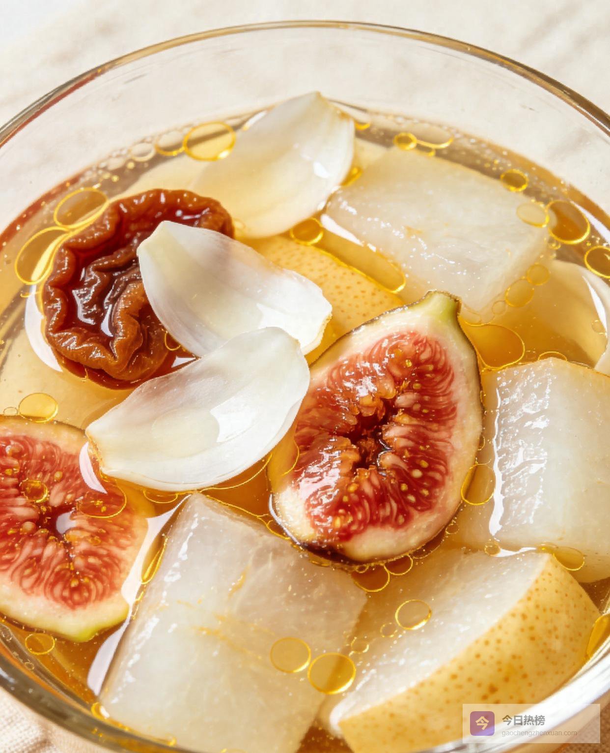 把雪梨的清甜、百合的胶糯、无花果的软润一次性炖进800毫升清水里,大火煮沸后转小火25分钟,关火前撒几粒冰糖。端起碗,汤色澄亮,梨块入口即化,甘甜带着微微花果香直抵喉头,干痒、异物感瞬间被安抚。每天一碗,肺里像被细雨刷过,连呼吸都带着凉意。