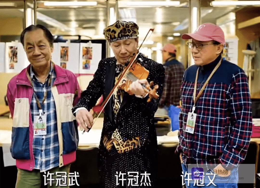 画面里,许冠杰居中拉小提琴,豹纹贝雷帽配斑点套装,帅气自然;许冠文双手插兜,静静注视弟弟,笔挺身形让网友直呼:“他真的80岁了吗?”